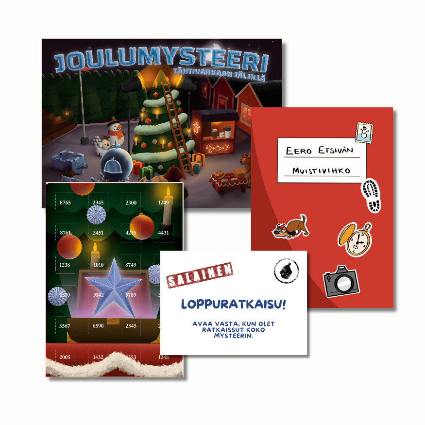 Joulu on vaarassa! Arvokas kristallitähti on kadonnut, ja teidän tehtävänne on selvittää kuka tähden on varastanut. Joulumysteeri ei ole tavallinen joulukalenteri, vaan 24 päivän mittainen seikkailu täynnä arvoituksia, koodeja ja oivallusta vaativia pulmia. Jokainen päivä vie teidät askeleen lähemmäs mysteerin ratkaisua. Lopulta vain tarkka päättely ja tiimityö voivat pelastaa joulun.